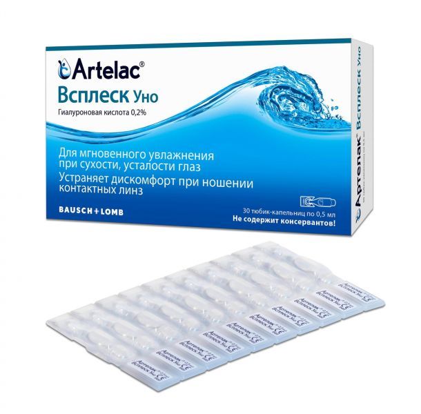 Ателак Всплеск - препарат искусственной слезы, содержащий гиалуроновую кислоту в высокой концентрации, который способствует быстрому устранению симптомов сухости и дискомфорта глаз.