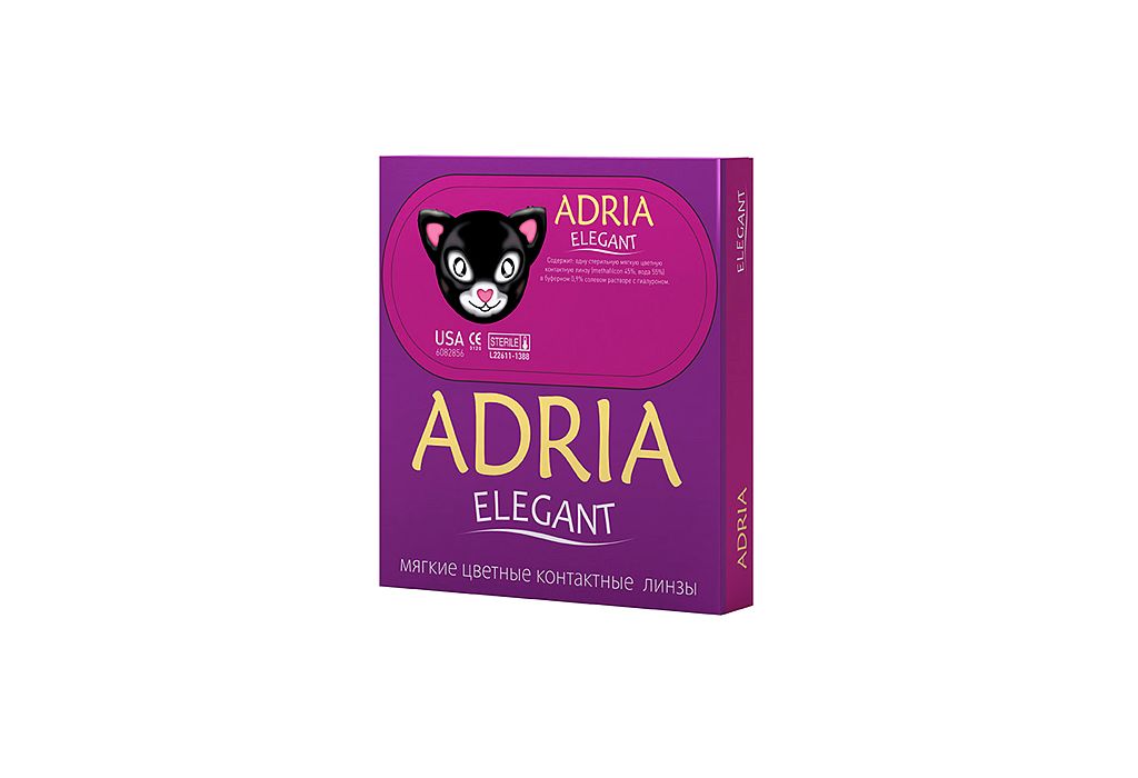 Adria Elegant – серия цветных линз с эффектом «больших» глаз. Позволяют визуально увеличить размер глаз за счет темного ободка и контрастных цветов. Перекрывают природныйцвет глаз. Серия линз представлена 4 цветами.